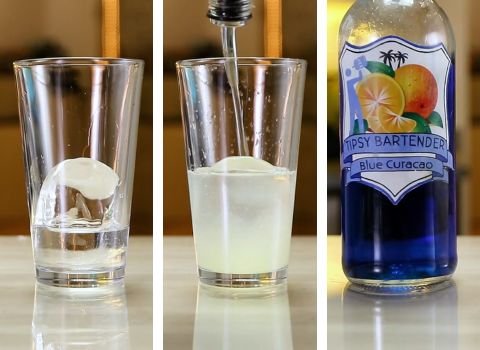- Blue Curacao (Splash): Blue curacao gives the cocktail its signature bright blue color and adds a light citrus note that complements the lemon. Triple sec with a few drops of blue food coloring can be used as a replacement.