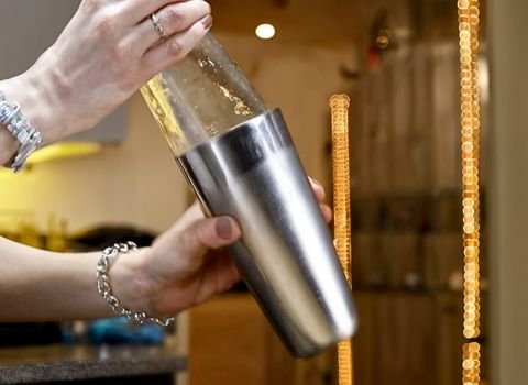 - Secure the lid on your shaker tightly. Shake it hard for about 15–20 seconds. The shaker should feel very cold, perfectly chilling and diluting the drink.