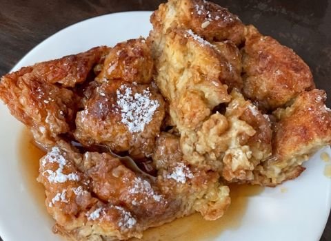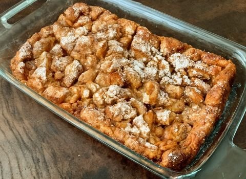 It feeds everyone at once, can be prepped the night before, and bakes while I slow down and breathe. The result feels rich and comforting, like a bakery-style breakfast at home.