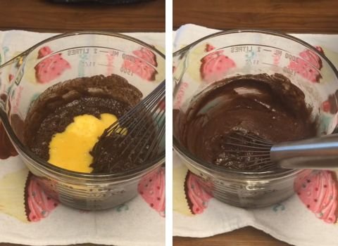 - Add the 4 egg yolks directly to the dry mixture. Stir until smooth. The cocoa will absorb moisture from the yolks and turn into a thick, creamy paste.