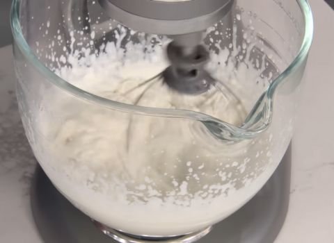 - Place the 4 egg whites in a clean mixing bowl. Add ¼ teaspoon cream of tartar if using. Beat on high speed until soft peaks form, about 3–5 minutes.