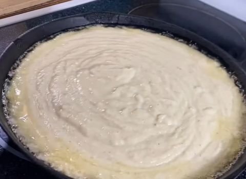 - Pour the remaining hot oil back into the skillet, then add the batter. The edges should sizzle right away—this helps create a crisp crust.