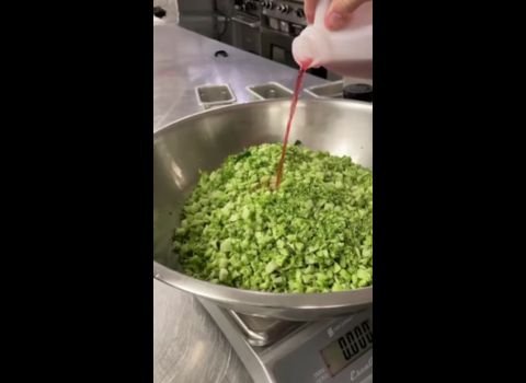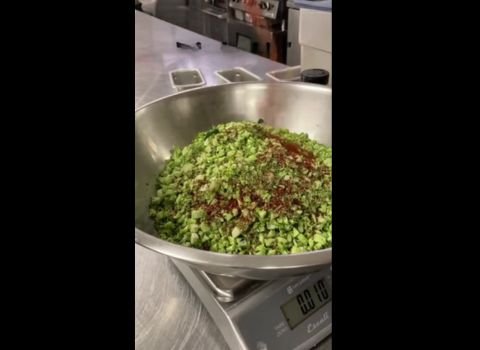 The flavor comes from Aleppo-style pepper, chipotle chilies, oregano, coriander, salt, olive oil, and a touch of red wine vinegar. These simple items mix together to give the broccoli a warm kick with a soft tang.