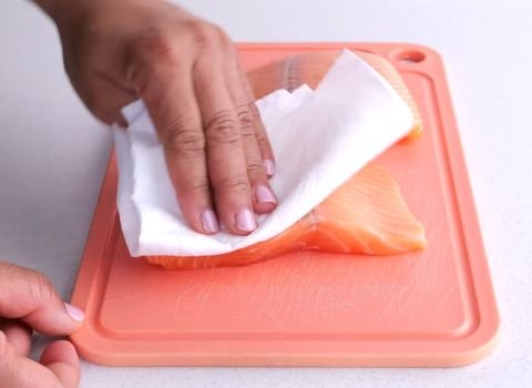 2. Use paper towels to pat your salmon fillets completely dry. This ensures the fish will sear properly and get a nice golden crust instead of steaming.