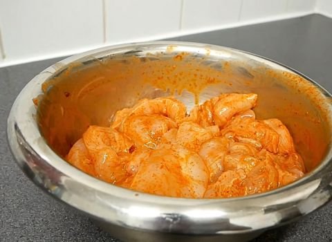 Cover the bowl with plastic wrap and refrigerate for at least 2 hours, preferably overnight, to make the chicken tender and flavorful.