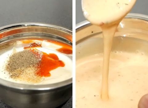 - 1/2 cup (150ml) buttermilk – Creates tangy base for sauce. Can substitute with regular milk plus lemon juice.