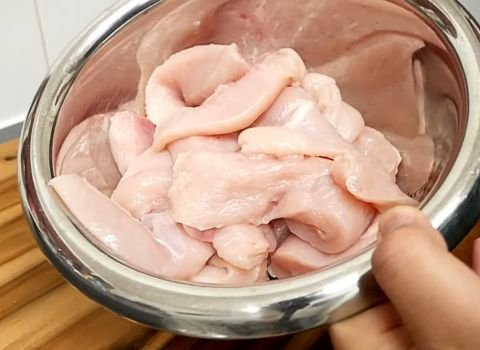 Remove the natural tenders from each breast by gently pulling them away with your hands. For larger breasts, slice them in half lengthwise, then cut into thick strips about the same size as the natural tenders.