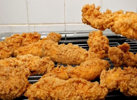 - Heat oil in a large pot or deep fryer to 160°C (320°F). Use a cooking thermometer to check the temperature. Oil should be deep enough to fully submerge the chicken pieces.