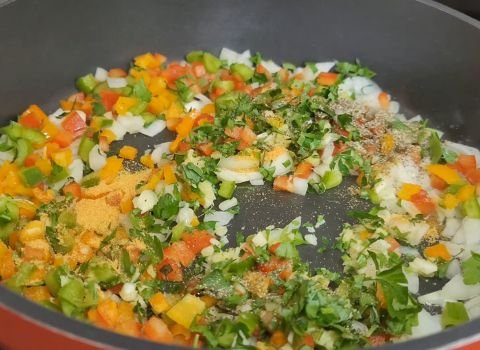 • Cut Vegetables Evenly: Chop the onion, bell peppers, and carrots into small, even pieces so they cook evenly and look neat in the final dish.