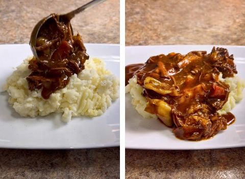 Serve it hot with the rich gravy and vegetables. It goes perfectly over mashed potatoes or rice.