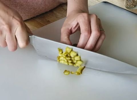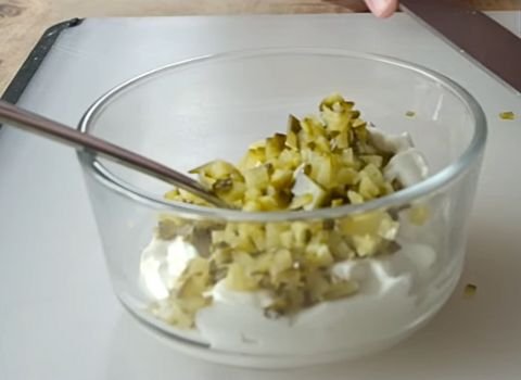 - Finely chop the dill pickle and fresh dill. If you’re using capers, chop them into tiny pieces too. This helps the sauce stay smooth and easy to spread.